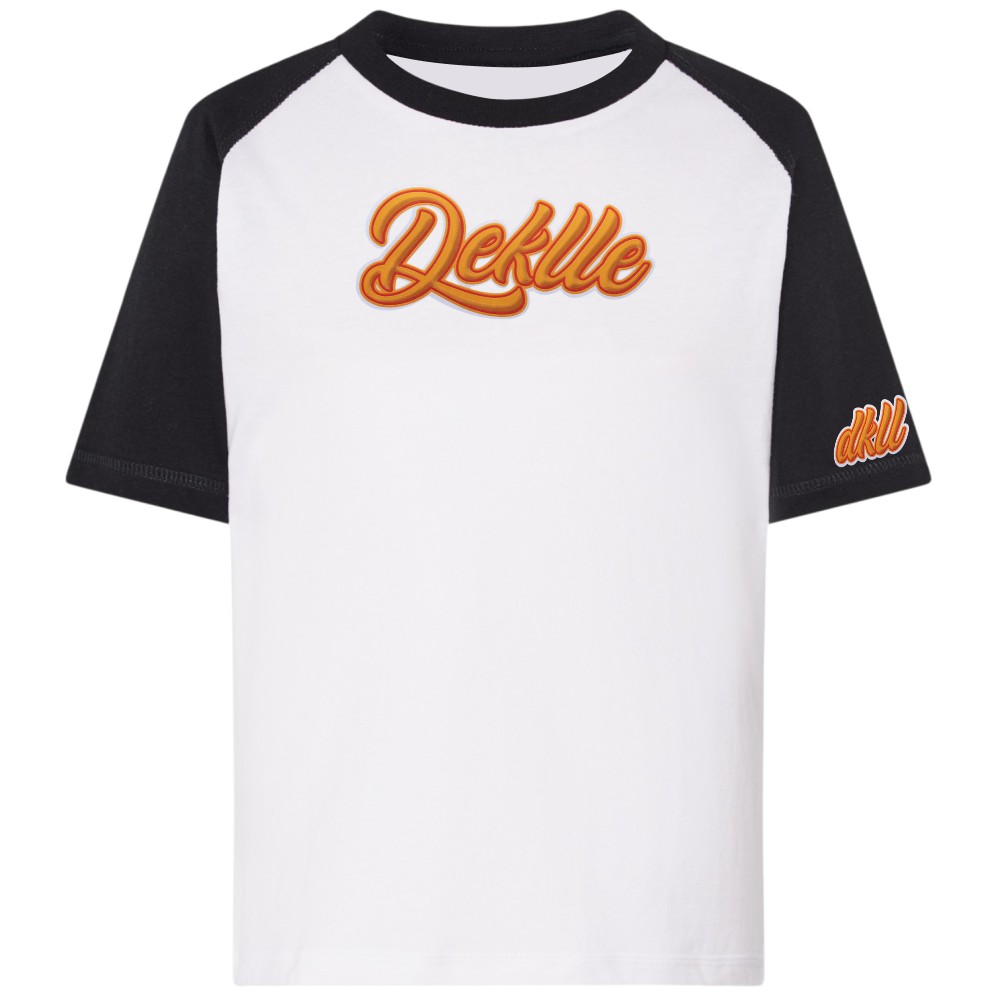 CAMISETA BEISBOLERA UNISEX TEJIDO SPORT, COSTURAS ESPECIALES EN CUELLO Y EN DIFERENCIA DE COLOR. DISEÑOS BASEBALL DKLL Y DEKLLE EN PARCHE MICROBORDADO. TALLAS XXXS, XXS, XS 100 % ALGODÓN Y MISMO COLOR DE LAS MANGAS EN CUELLO. TALLAS DESDE LA S HASTA LA XXXL 100 % POLIÉSTER SPORT.