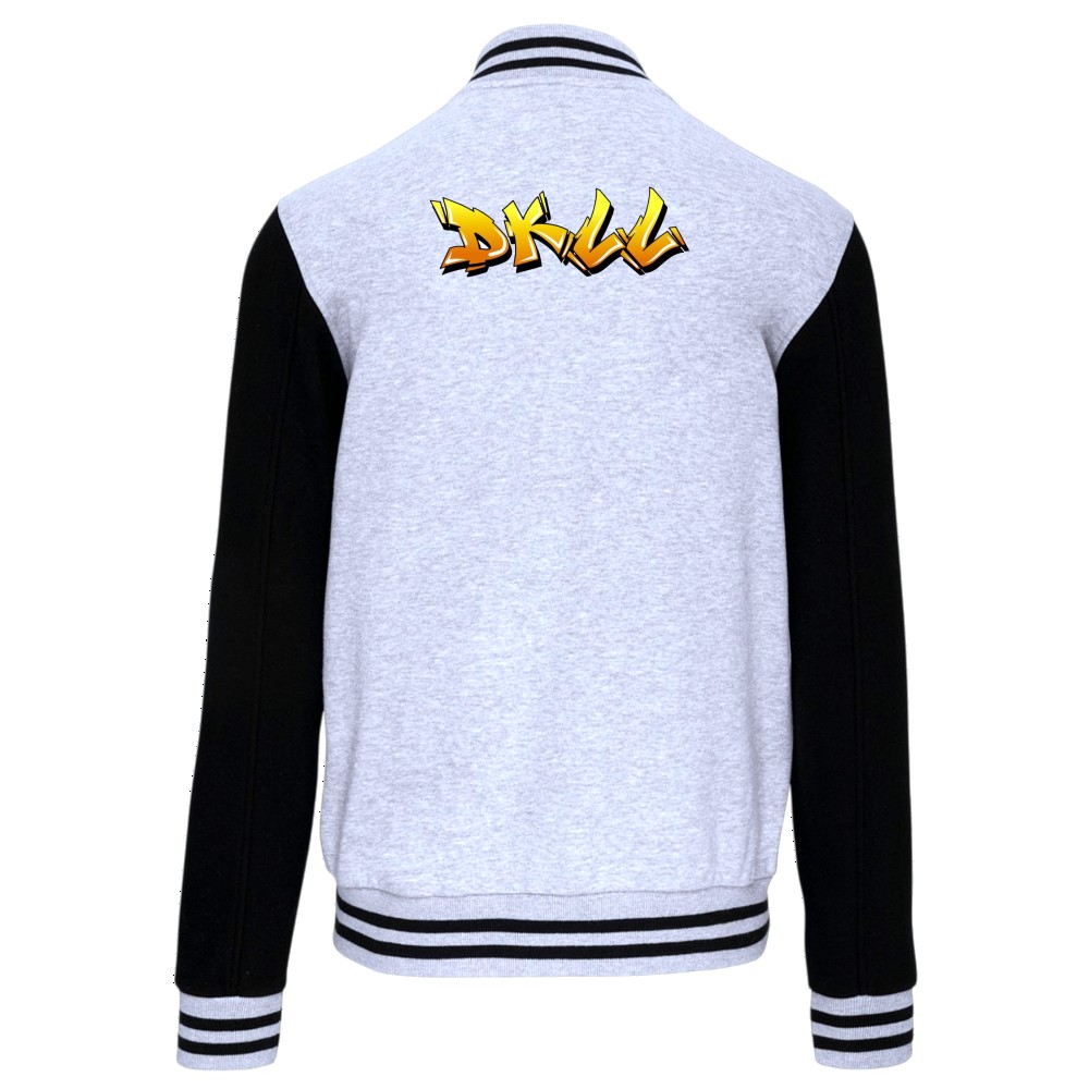 BEISBOLERA BLANCA CON MANGAS NAVY, DISEÑO TRASERO GRAFFITI, 100 % ALGODÓN NO TRATADO.