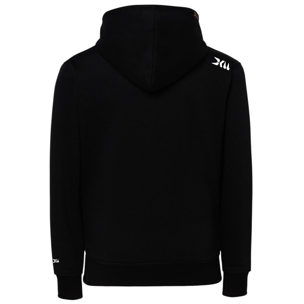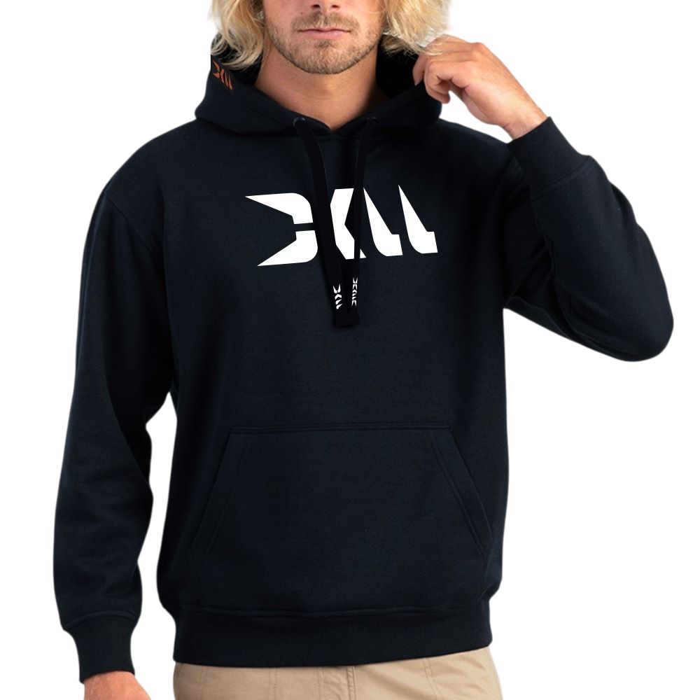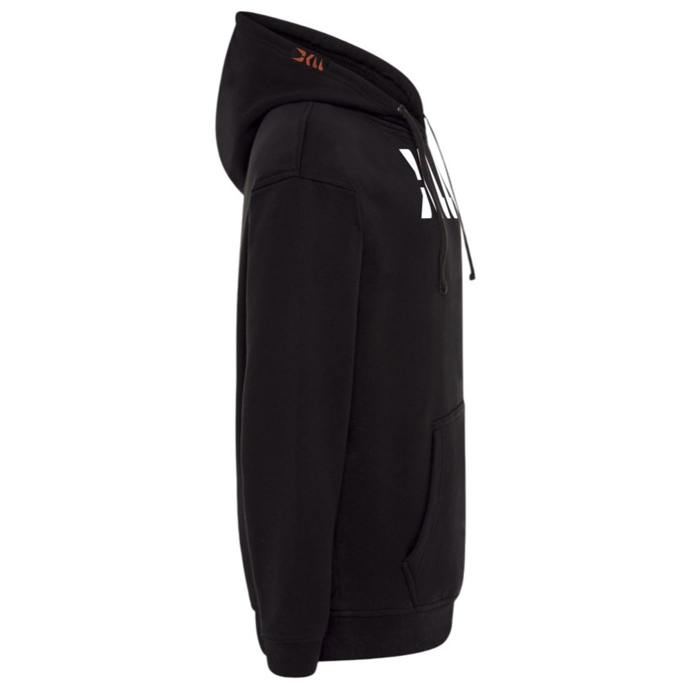 SUDADERA UNISEX CON BOSILLO DE CANGURO Y CAPUCHA, COLOR NEGRO. DISEÑO DKLL ENGOMADO EN RELIEVE 3D. CALIDAD SUPREM 80 % ALGODÓN 20 % POLIÉSTER. TALLAS XXS Y XXXS SIN CORDON.