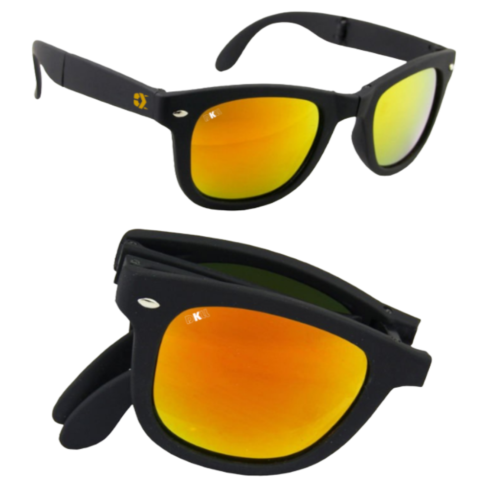 GAFA DE SOL DESPLEGLABLES ORANGE, LOGOS GRABADOS EN LENTE Y LAS 2 PATILLAS, CON FUNDA DURA DE POLIESTER RECICLADO Y PAÑITO DE LIMPIEZA