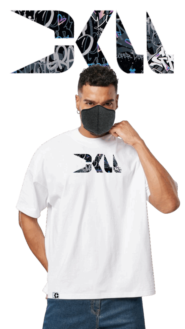 CAMISETA OVER BLANCA UNISEX, CON ESTAMPADO GRAFFITI EN PECHO Y ETIQUETAS EXTERIORES MICROBORDADAS, ESCLUSIVOS DE NUESTRA MARCA, UN TEJIDO ESPECIAL DE ALGODÓN, CON UN GRAMAJE PERFECTO PARA TODO EL AÑO.