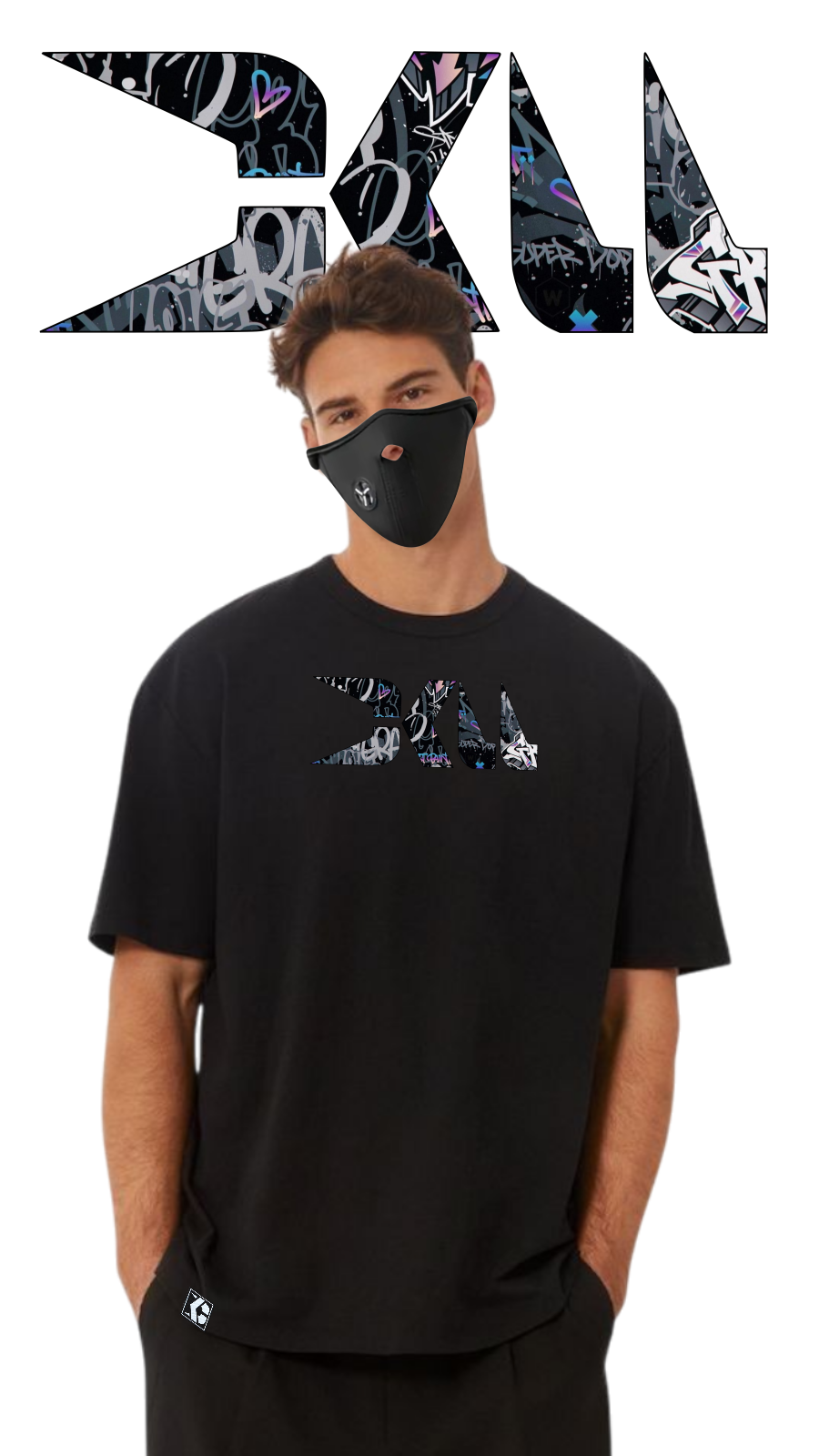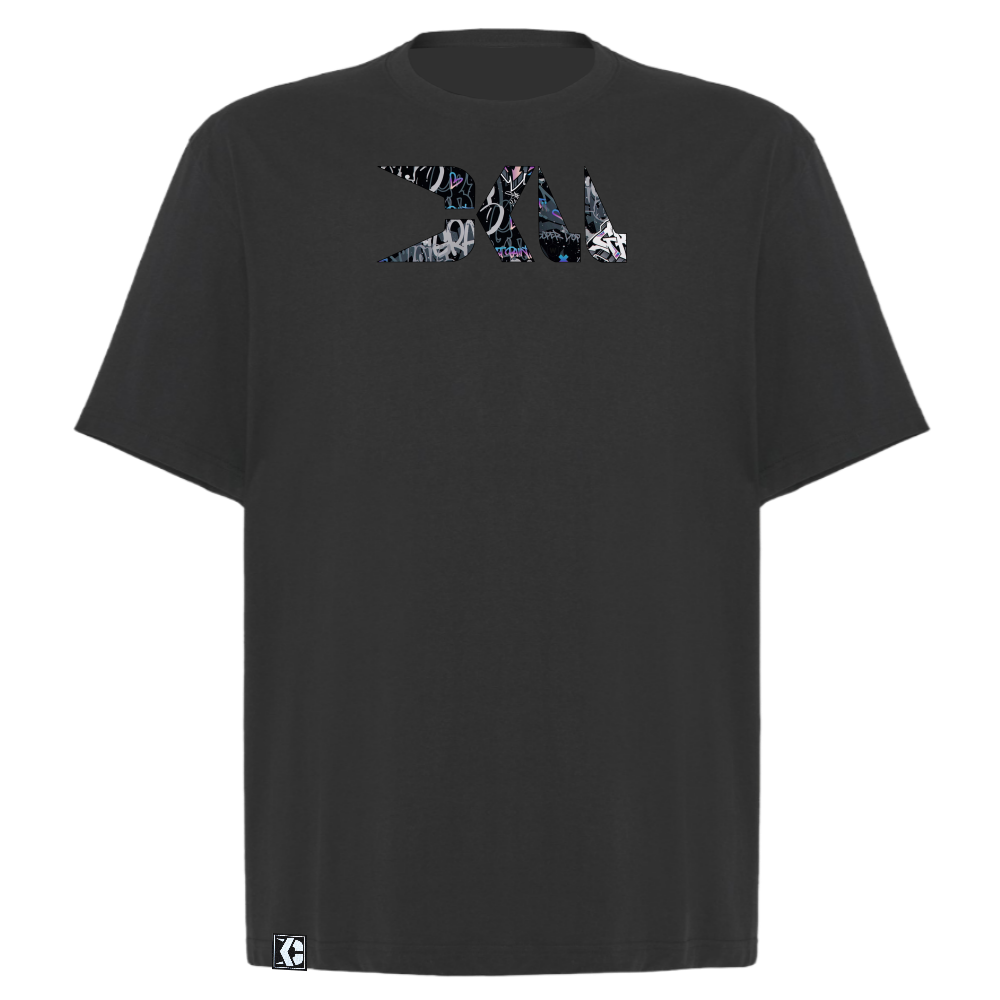 CAMISETA OVER NEGRA UNISEX, CON ESTAMPADO GRAFFITI EN PECHO Y ETIQUETAS EXTERIORES MICROBORDADAS, ESCLUSIVOS DE NUESTRA MARCA, UN TEJIDO ESPECIAL DE ALGODÓN, CON UN GRAMAJE PERFECTO PARA TODO EL AÑO.