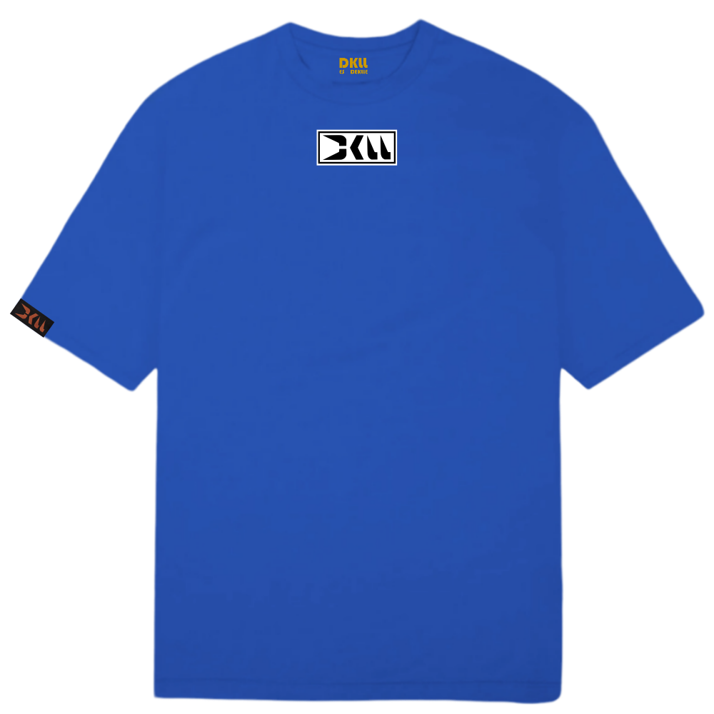 CAMISETA FIT OVER BLUE TEJIDO FIT PRO, DISEÑO DKLL MICROBORDADO EN PECHO, ETIQUETA TEJIDA EN MANGA.