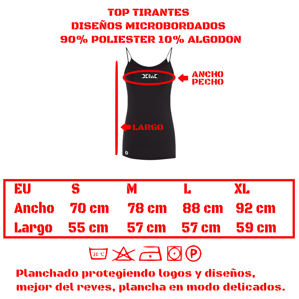 TOP DE TIRANTES CON PARCHE MICROBORDADO TERMOADESIVO, MUY COMODO, DEPORTIVO, INTERIOR, EXTERIOR